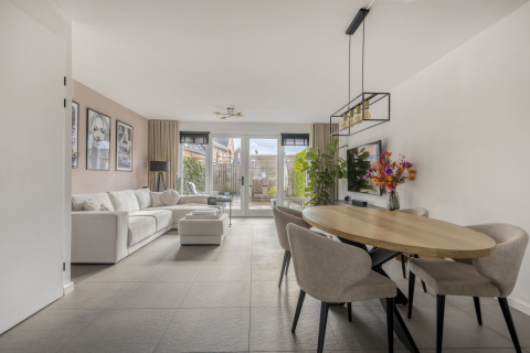 Aan de voorzijde is voldoende plek voor een royale zithoek met hoekbank en tv-meubel, perfect voor ontspannen avonden of gezellige momenten met vrienden en familie. Richting de achterzijde van de woning is er volop ruimte voor een grote eettafel met zes tot acht stoelen, waar je gemakkelijk kunt ontbijten, dineren of spelletjes doen met het gezin.